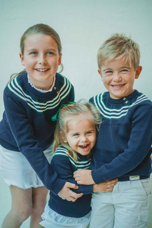 Jersey azul marino greca con rayas verde
