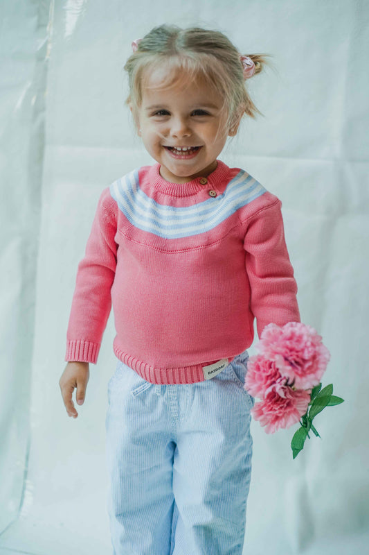 Jersey rosa con greca rayas celeste