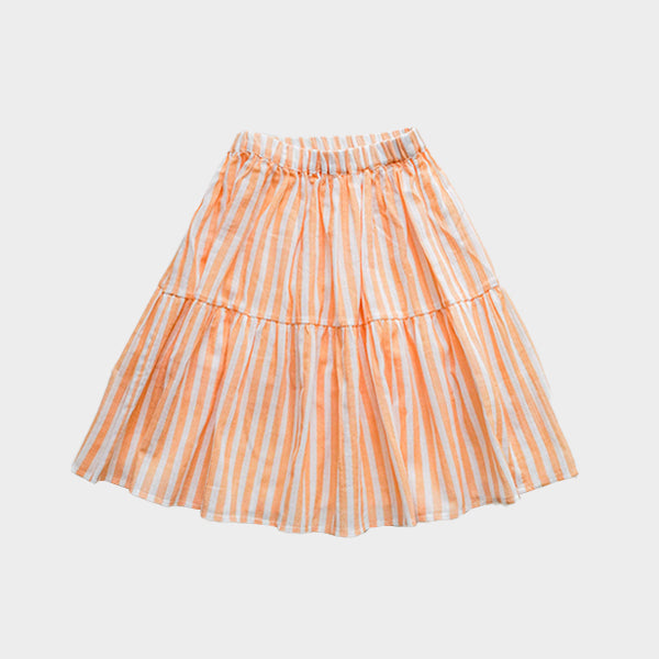Falda midi con estampado de rayas naranjas, para niñas de 2 a 12 años.