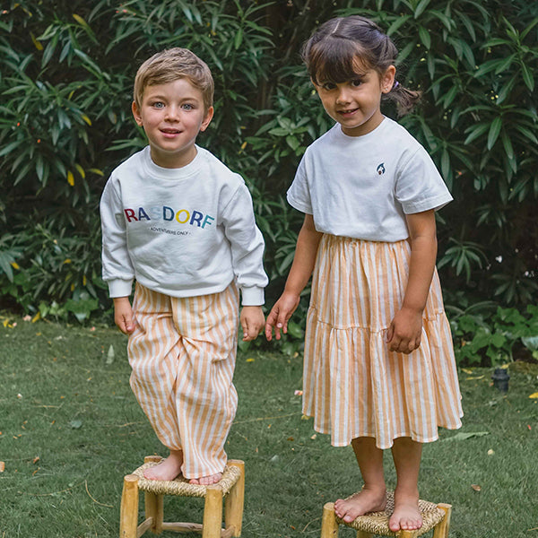 Falda midi con estampado de rayas naranjas, para niñas de 2 a 12 años.